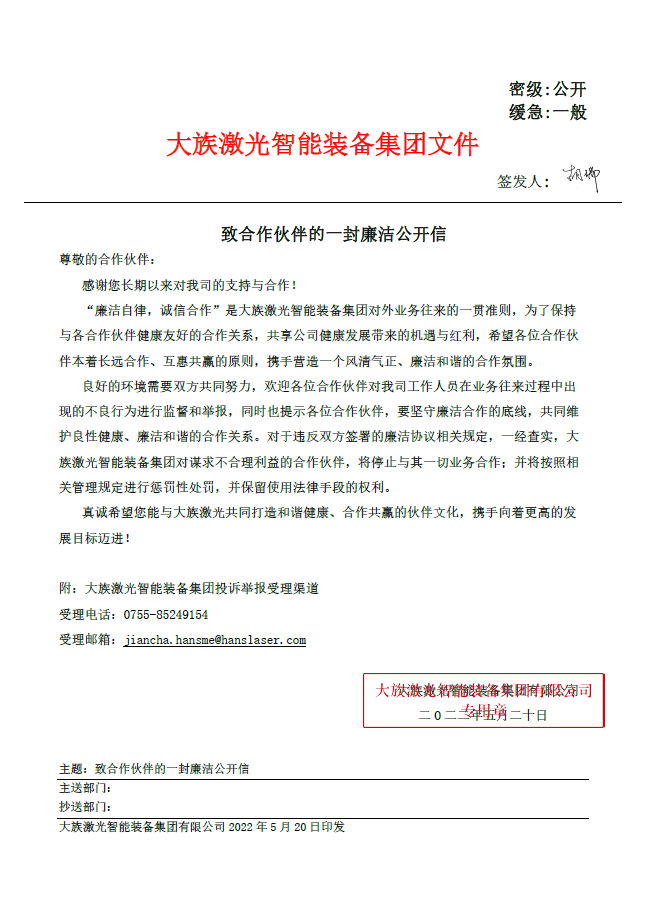 致合作伙伴的一封廉潔公開信