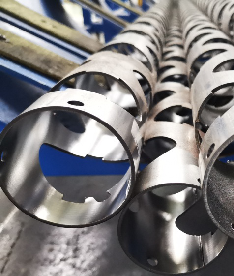 激光切管柔性生產(chǎn)線切割彈架實現(xiàn)切割輪廓緊密貼合、無失真,所見即所得;切割孔徑向、軸向尺寸無差異,加工孔直徑偏差實現(xiàn)嚴格限制,避免彈頭晃動;相位角自動調(diào)整補償,實現(xiàn)射孔彈穿孔無偏差;復雜輪廓不抬頭切割,實現(xiàn)高速切割、高效率掉片等重大技術突破。