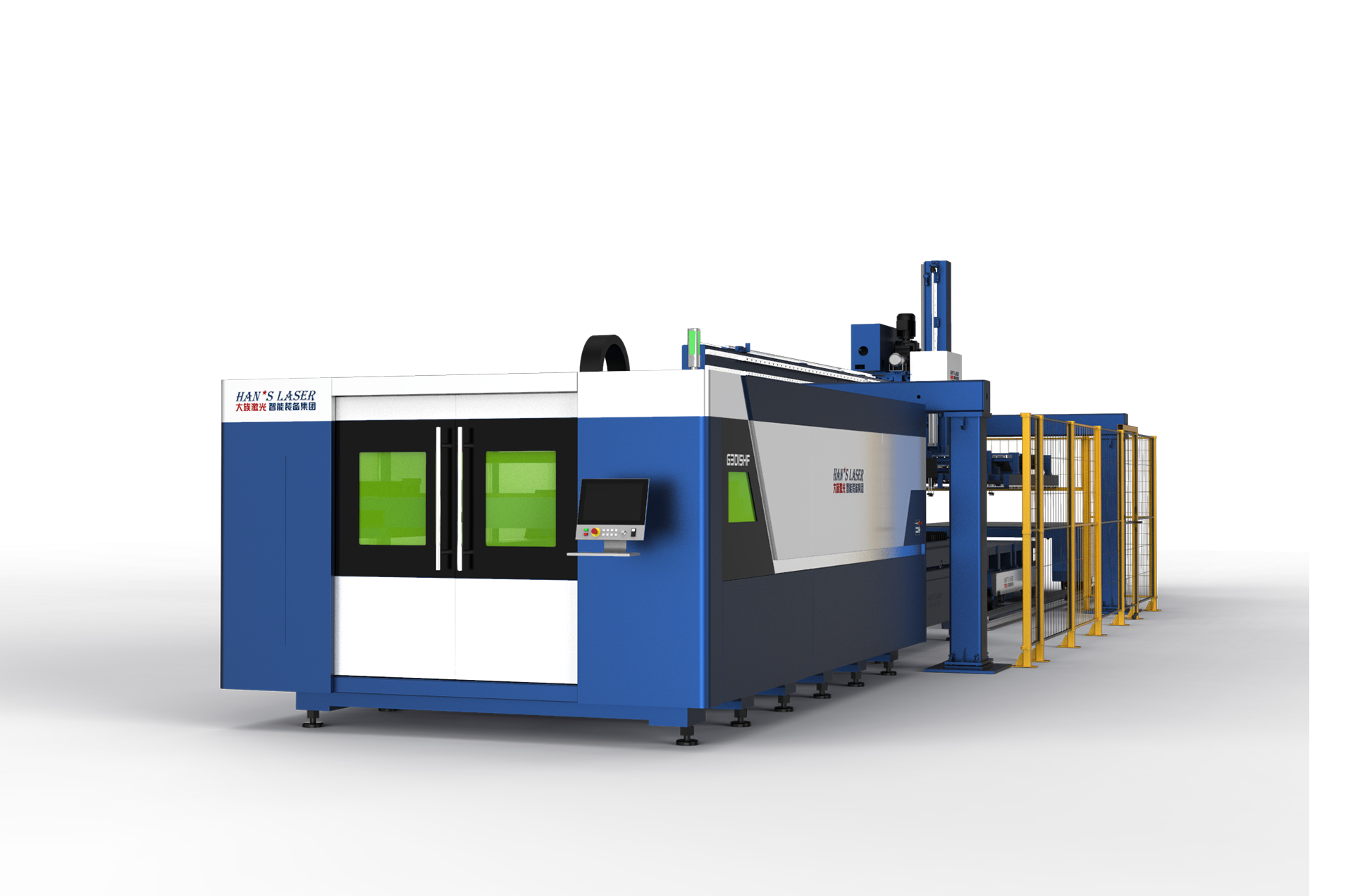 預先設定的程序自動完成上料、切割到自動下料的全過程。可選配大族激光智能裝備